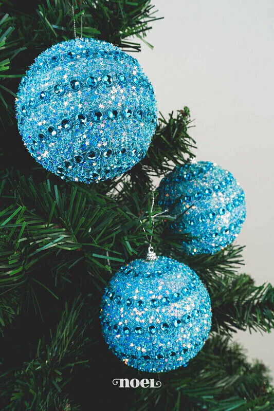 Descrição geral: Kit de 03 bolas decoradas de Natal azuis, com lantejoulas e glitter. Confeccionadas em poliestireno, são leves e duráveis. Cada bola acompanha um cordão para pendurar, facilitando o uso imediato na montagem. Cada peça tem 10cm. Uma decoração natalina completa começa pelas bolas! Elas são a base de qualquer composição e garantem charme, tradição e beleza à sua festa. Símbolo clássico do Natal, as bolas decorativas são indispensáveis na montagem da árvore e na composição de ambientes festivos. Representando união, alegria e proteção, elas trazem cor, brilho e movimento à decoração, além de despertar memórias afetivas ligadas às festas de fim de ano. Essenciais para transformar qualquer espaço com espírito natalino