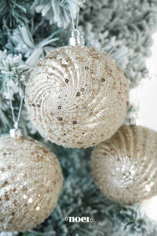 Descrição geral: Kit de 03 bolas decoradas de Natal na cor champagne. Texturizada com paetês dourado. Confeccionadas em polipropileno, são leves e duráveis. Cada bola acompanha um cordão para pendurar, facilitando o uso imediato na montagem. Cada peça tem 10cm. Uma decoração natalina completa começa pelas bolas! Elas são a base de qualquer composição e garantem charme, tradição e beleza à sua festa. Símbolo clássico do Natal, as bolas decorativas são indispensáveis na montagem da árvore e na composição de ambientes festivos. Representando união, alegria e proteção, elas trazem cor, brilho e movimento à decoração, além de despertar memórias afetivas ligadas às festas de fim de ano. Essenciais para transformar qualquer espaço com espírito natalino