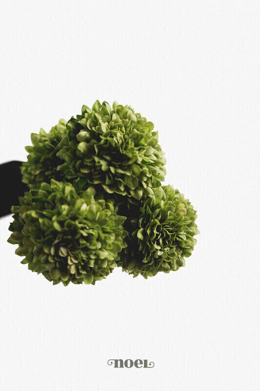 Descrição geral: flor verde com galhos aveludados verde , acabamento fosco , o buquê tem aproximadamente 6 flores com 7cm de diâmetro cada