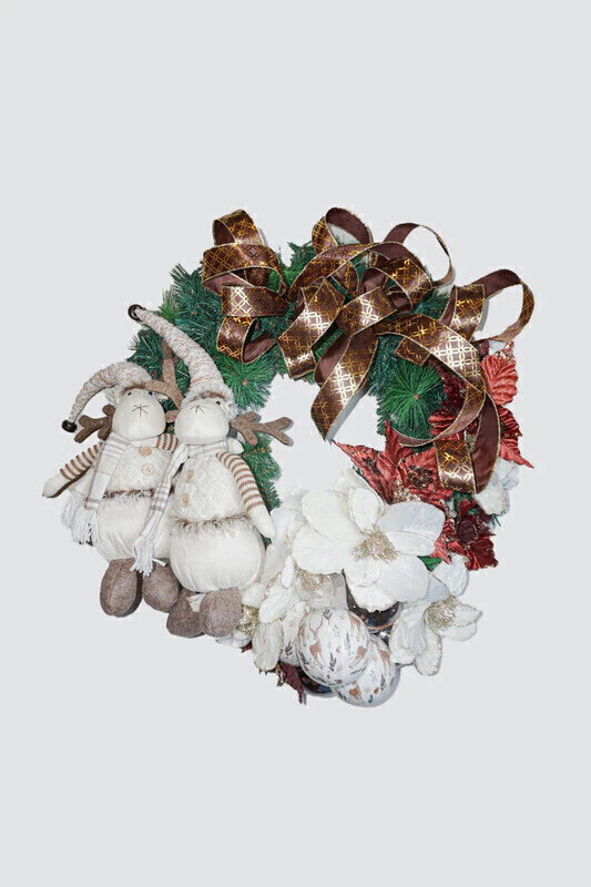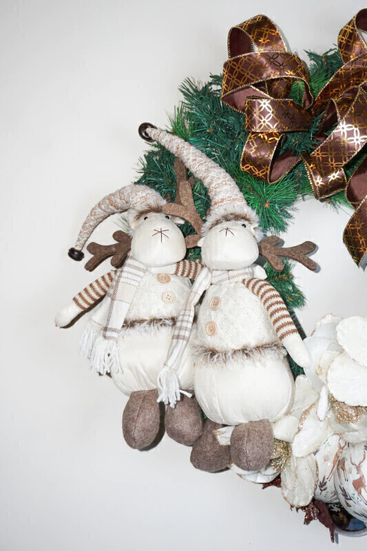Kit Enfeites + Guirlanda Alce Branco/Nude/Marrom - 60cm