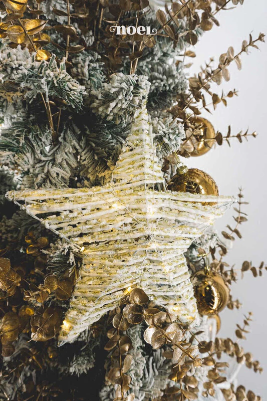 Dimensões do produto - (AxLxP): 30x30x6cm Peso: 127g Material: tecido e metal Cor: branco e dourado Descrição geral: Estrela de Natal revestida com cordões de tecido brancos e com brilhos em dourado. Confeccionada em metal e tecido, é leve e durável , a estrela tem led e usa 2 pilhas AA. Pilhas ou baterias não acompanham o produto. Os pendentes de Natal são elementos essenciais na decoração natalina, pois simbolizam a magia e o encantamento dessa época tão especial Dica Noel: a estrela pode compor arranjos, guirlandas,árvores, outros cantinhos festivos da casa ou ambientes comerciais. Esses pequenos detalhes transformam o ambiente, trazendo a simbologia da renovação, da luz e da união que o Natal representa. Além disso, ajudam a criar uma atmosfera acolhedora, alegre e cheia de significado para todos que convivem no espaço. Invista em peças que transmitam o espírito natalino e que possam ser reutilizadas com criatividade em diferentes composições a cada ano. Uma decoração bem cuidada se transforma em tradição, criando memórias afetivas para toda a família Limpeza suave: Use um pano seco, espanador macio ou pincel de cerdas finas para remover a poeira delicadamente, sem danificar o acabamento Obs: Evite empilhar objetos pesados sobre elas. A cor do produto pode sofrer alteração devido à configuração de luz e tela. Produto vendido individualmente. Objetos decorativos utilizados nas fotos não fazem parte do conteúdo da embalagem.