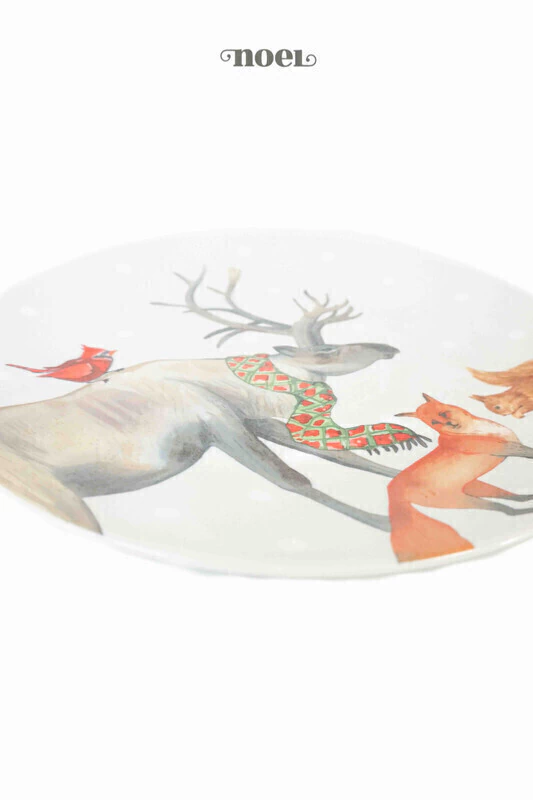 Dimensões do produto - (AxLxP): 20x20x2cm Peso: 255g Material: Porcelana Cor: Vermelho, cinza e Branco Descrição geral: No centro do prato, há uma rena com um cachecol estampado em vermelho e verde. Um pássaro cardeal vermelho está pousado nas costas da rena. Na frente da rena, há uma raposa e um esquilo O fundo é branco, com pequenos pontos brancos que representam flocos de neve Observação: A cor do produto pode sofrer alteração devido à configuração de luz e tela. Produto vendido individualmente. Objetos decorativos utilizados nas fotos não fazem parte do conteúdo da embalagem.