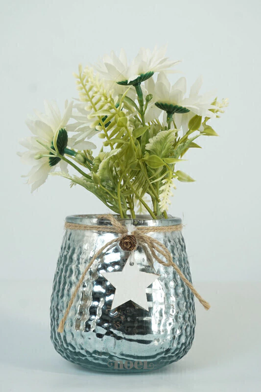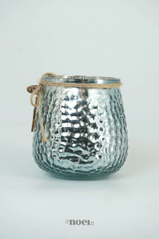 Descrição geral: É um vaso de vidro de cor azul-escura com uma textura em relevo que se assemelha a pequenas bolhas